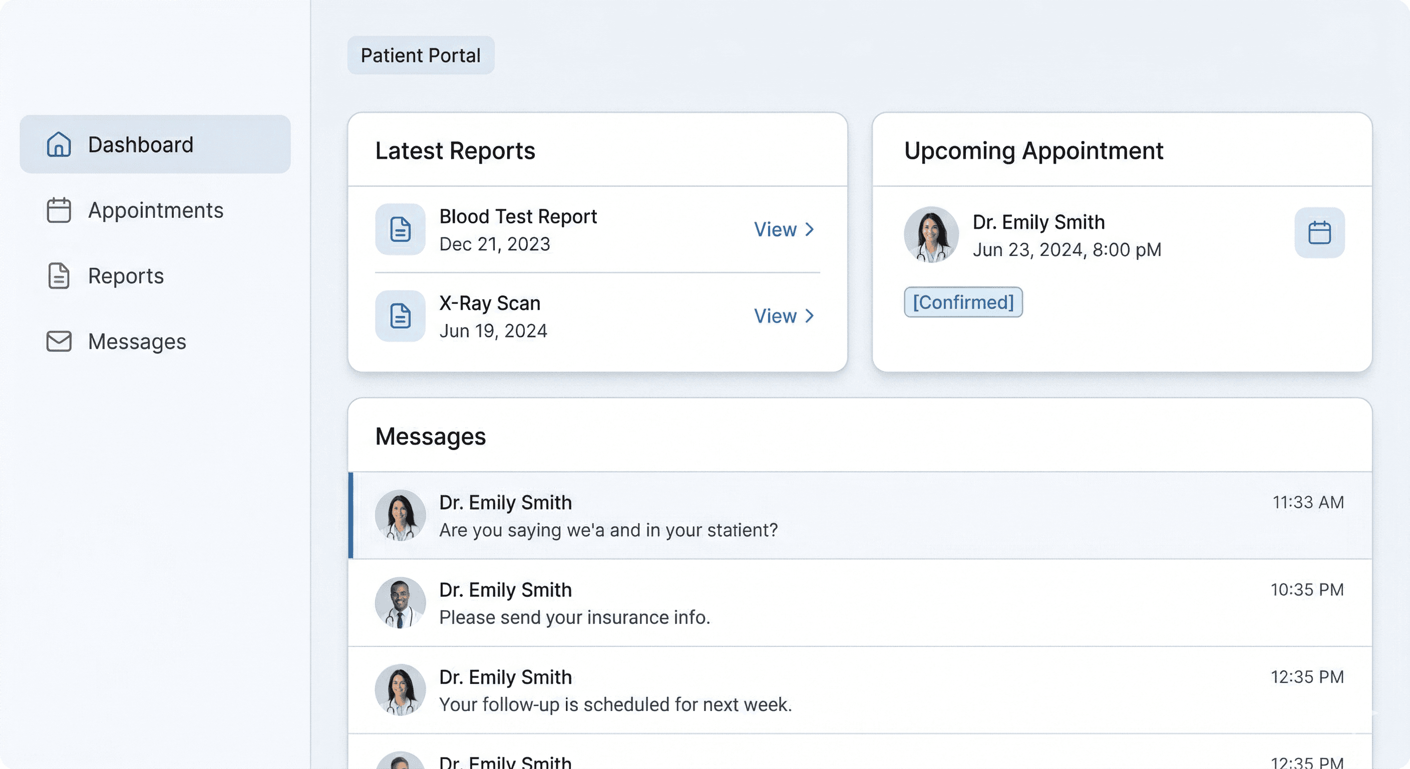 Enable video consultations, scheduling, and secure patient-doctor interactions.